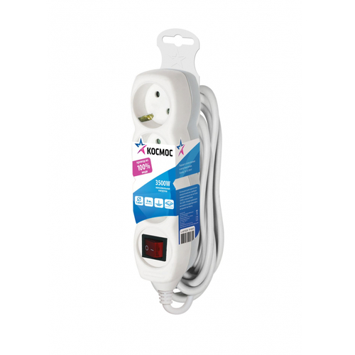 Удлинитель Космос 3 метра, 3 гнезда, 16А, ПВС 1мм. С заземлением