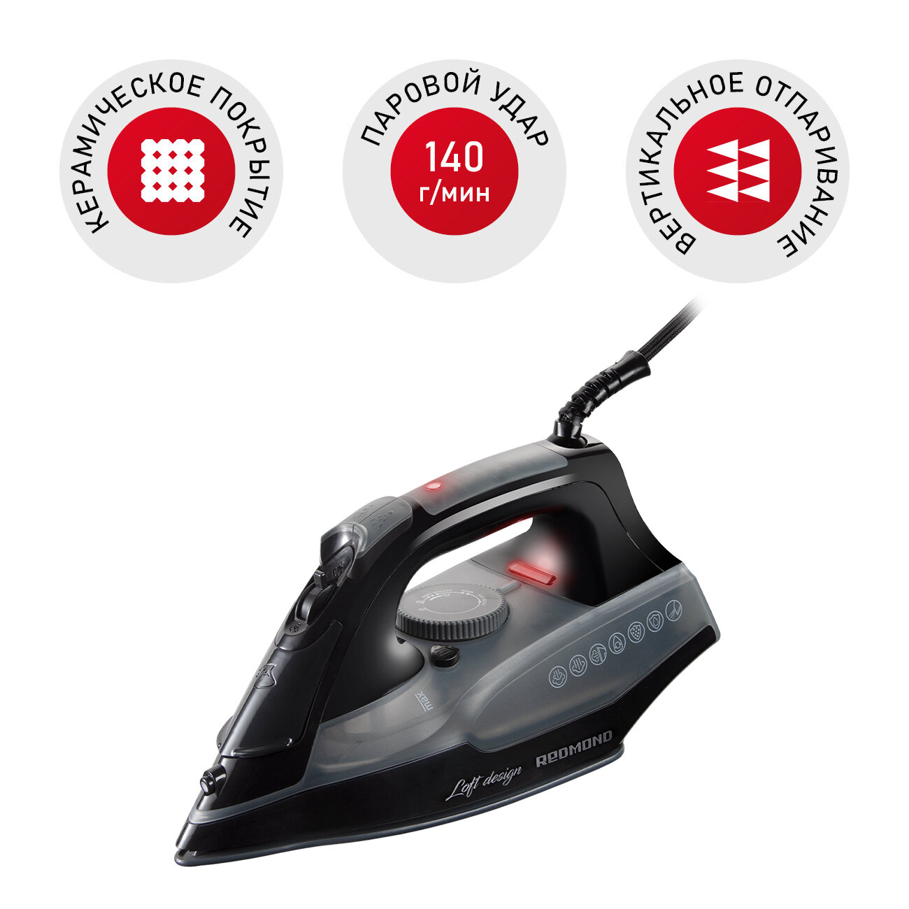 Утюг REDMOND RI-C292, керамический, вертикальный отпариватель, 2200Вт