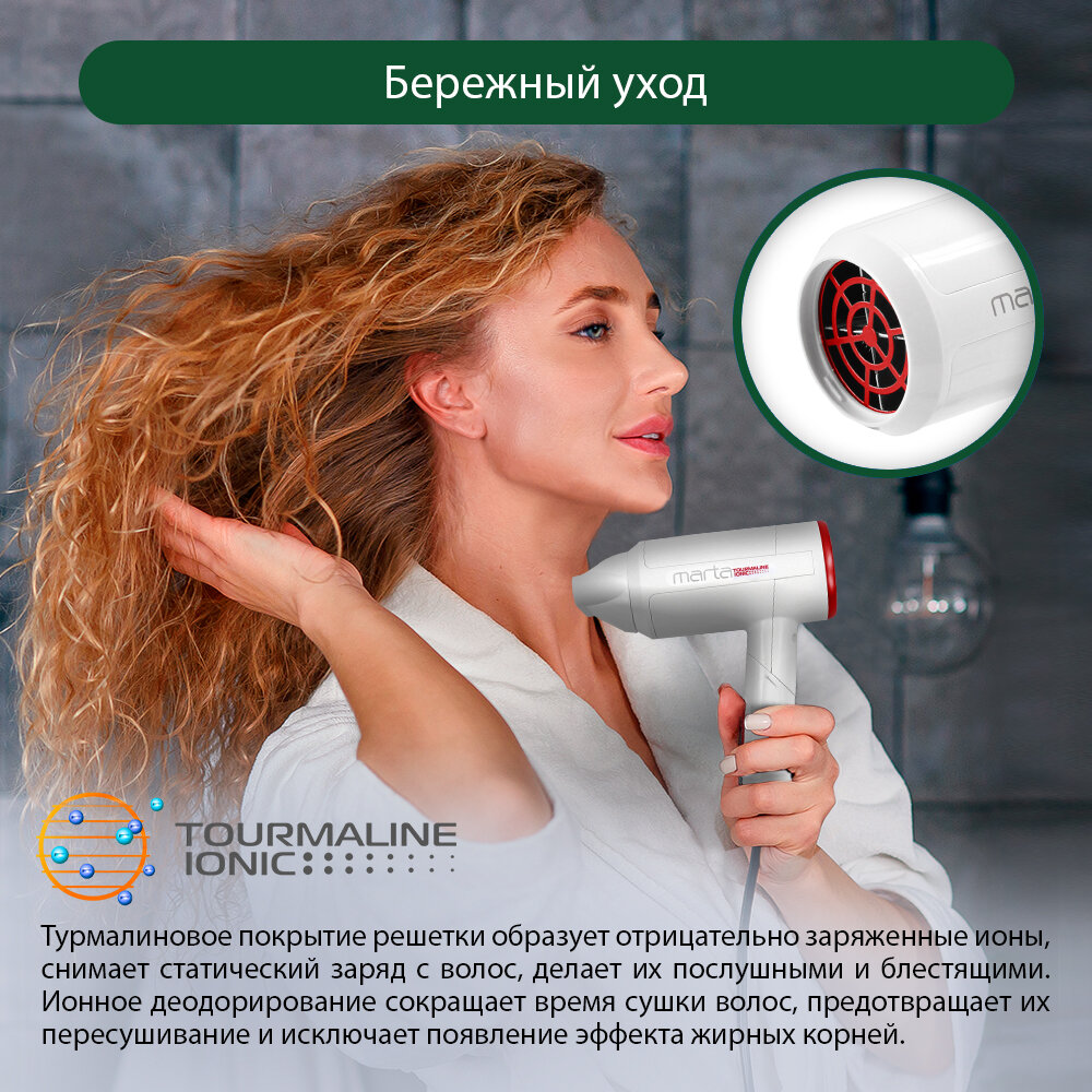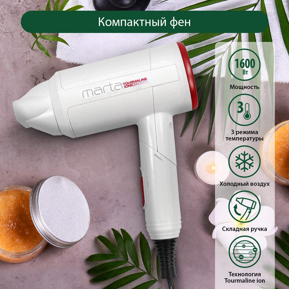 Фен MARTA MT-1265 Технология tourmaline ionic белая фуксия