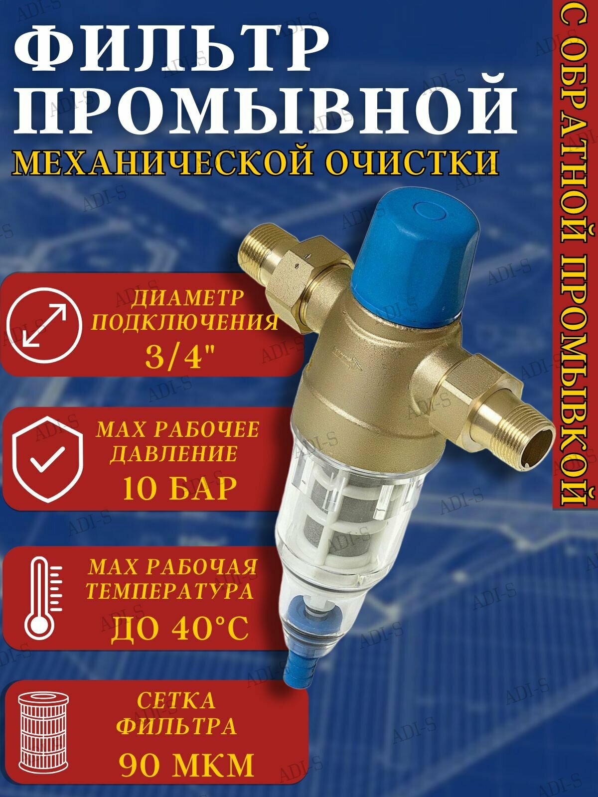 Фильтр с обратной промывкой 3/4" (для холодной воды)