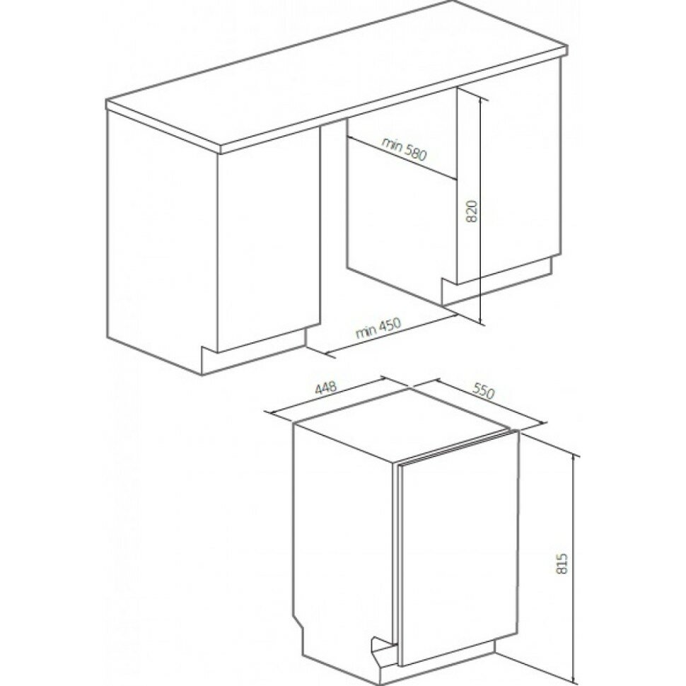 Встраиваемые ПММ шириной 45 см Graude/ 448 х 815 х 550 мм, 10 комплектов, подсветка Hi-brightness light, расход воды 8л, 8 программ, 44дБ, 1/2 загрузк