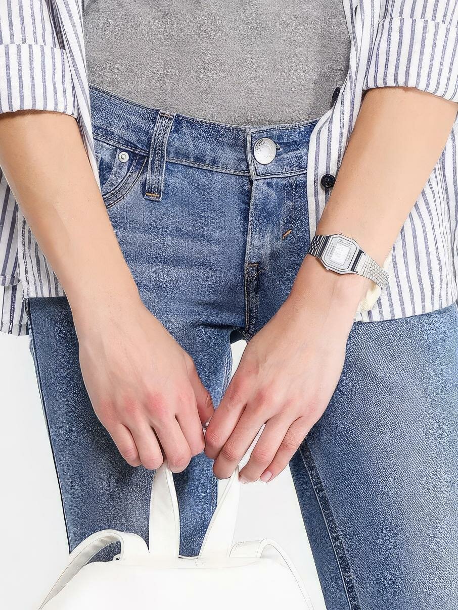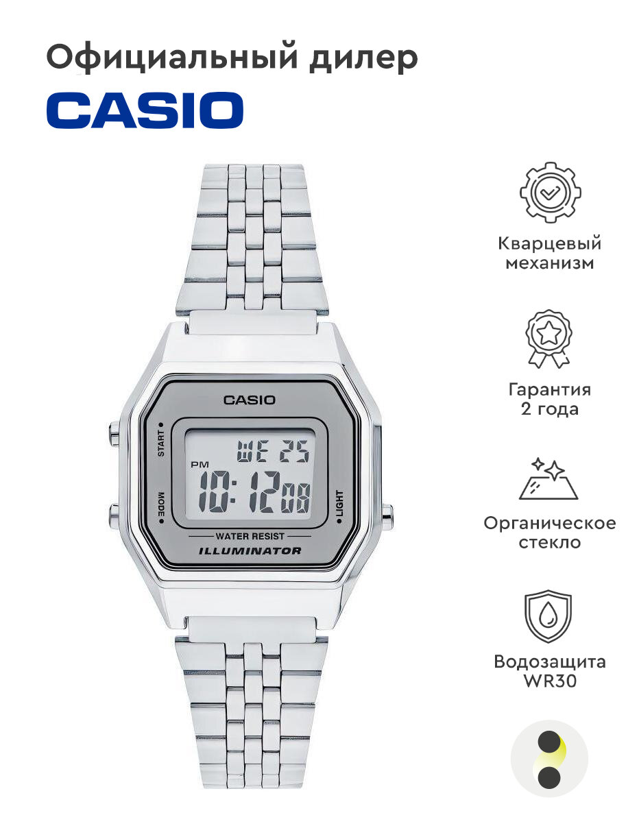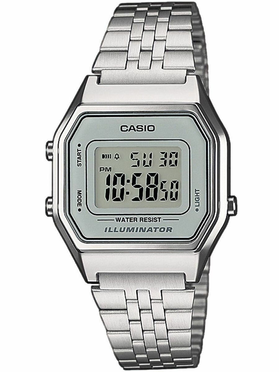 Купить Наручные часы CASIO Vintage LA-680WEA-7E, кварцевые, будильник, секундомер, водонепроницаемые, подсветка дисплея, серебряный