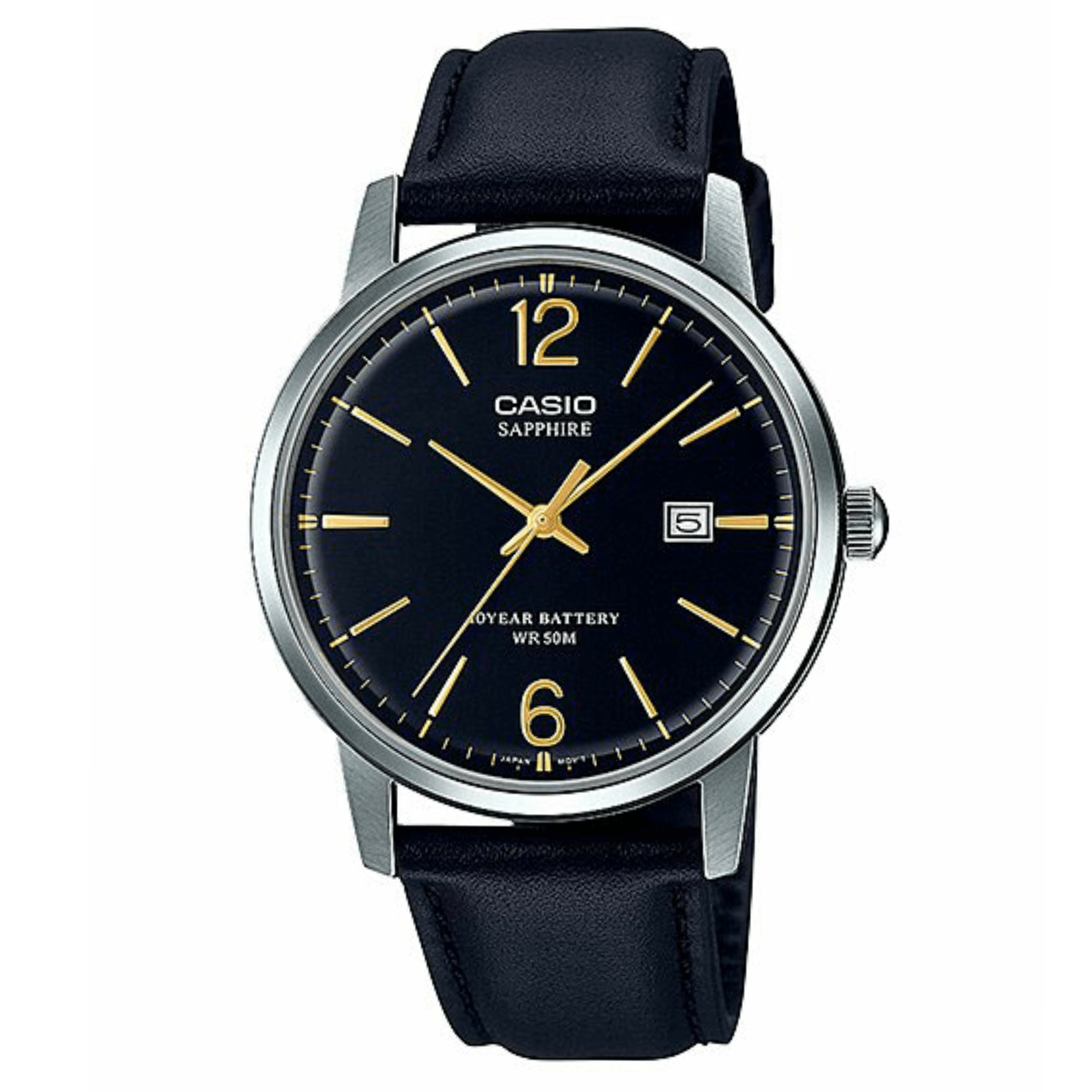 Наручные часы CASIO MTS-110L-1A кварцевые, водонепроницаемые, подсветка стрелок, бесшумный механизм, черный