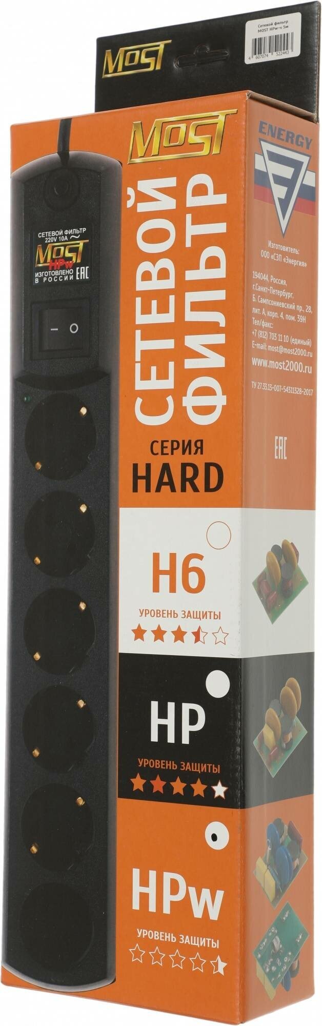 Сетевой фильтр Most HPw 5м (6 розеток) черный (коробка) .