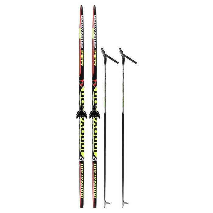 Комплект лыжный: пластиковые лыжи 190 см с насечкой, стеклопластиковые палки 150 см, крепления NN75 .
