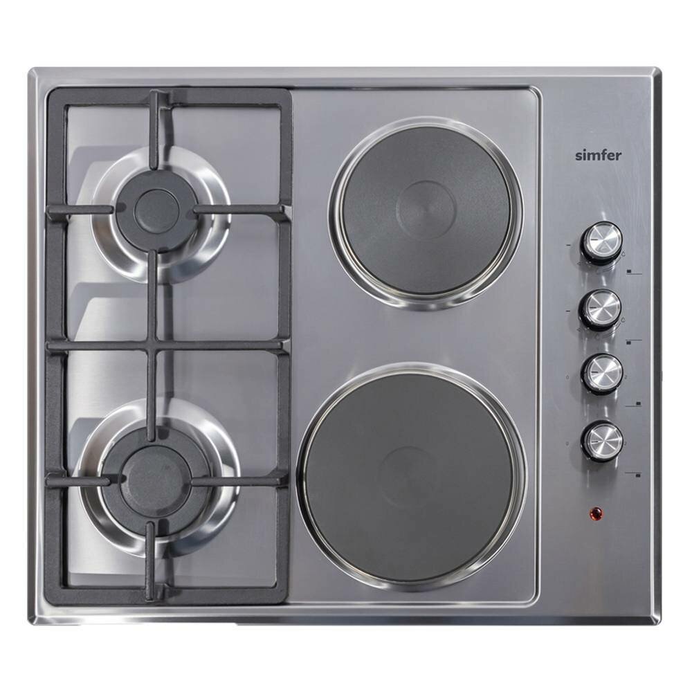 Комбинированная варочная панель Simfer H60Q22M516, 2 газ-конфорки, 2 электро конфорки, газ-контроль, автоподжиг