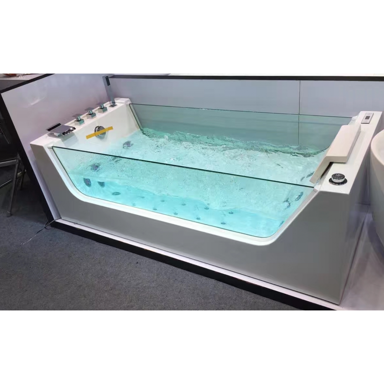 | Отзыв: | По дизайну просто шикарная ванная. Моется очень легко, цвет поверхность не изменила за время использования. Вода нигде не застаивается. Лежать в ней удобно и она вместительная. Дети просто пропадают здесь:). Форсунок много и каждая с многоцветной подсветкой. А в боковой стенке установлен многоцветный подводный фонарь. Предусмотрено всё для удобства. |