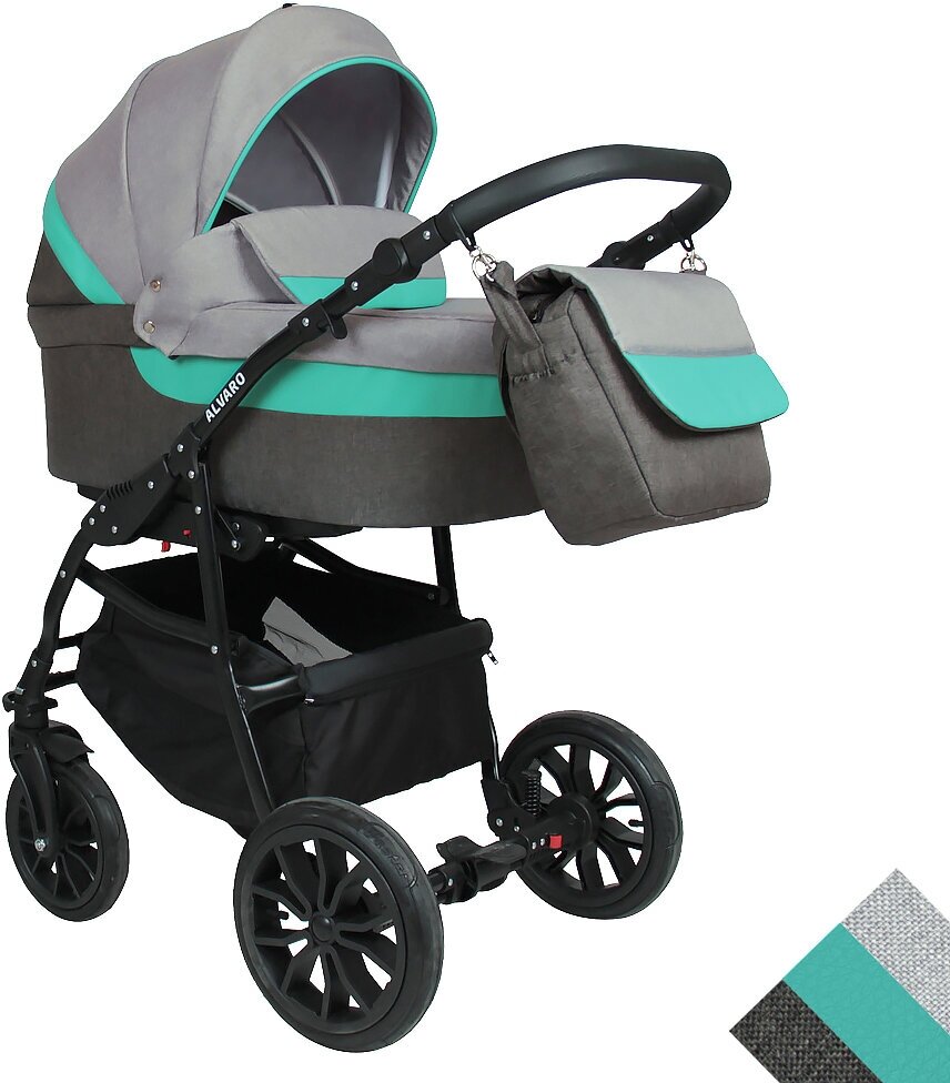 Купить Коляска 2в1 Alis Alvaro универсальная, всесезонная, (01), темно-серый, светло-серый, бирюзовый