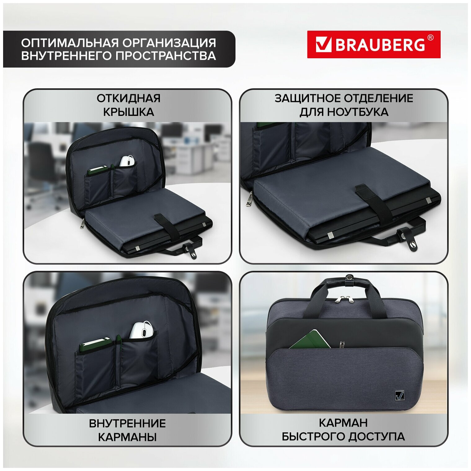 Сумка портфель BRAUBERG MODERN с отделением для ноутбука 15-16", откидная крышка, 29х42х11см, 270828