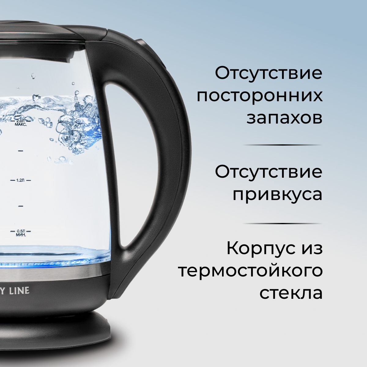 Чайник Galaxy LINE GL0559, стекло/черный