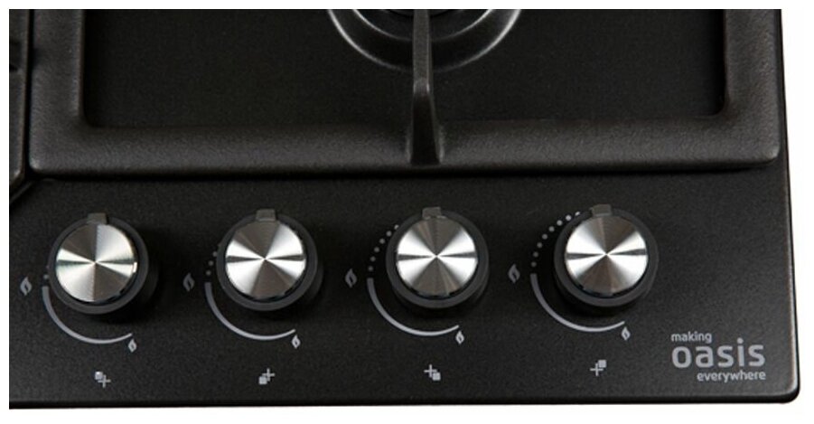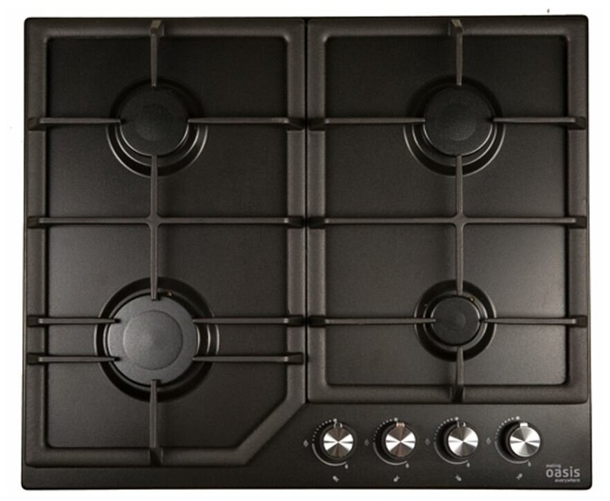 Варочная панель встраиваемая Oasis P-MBR, эмаль, черная, газ-контроль, чугунные решетки, 4 конфорки