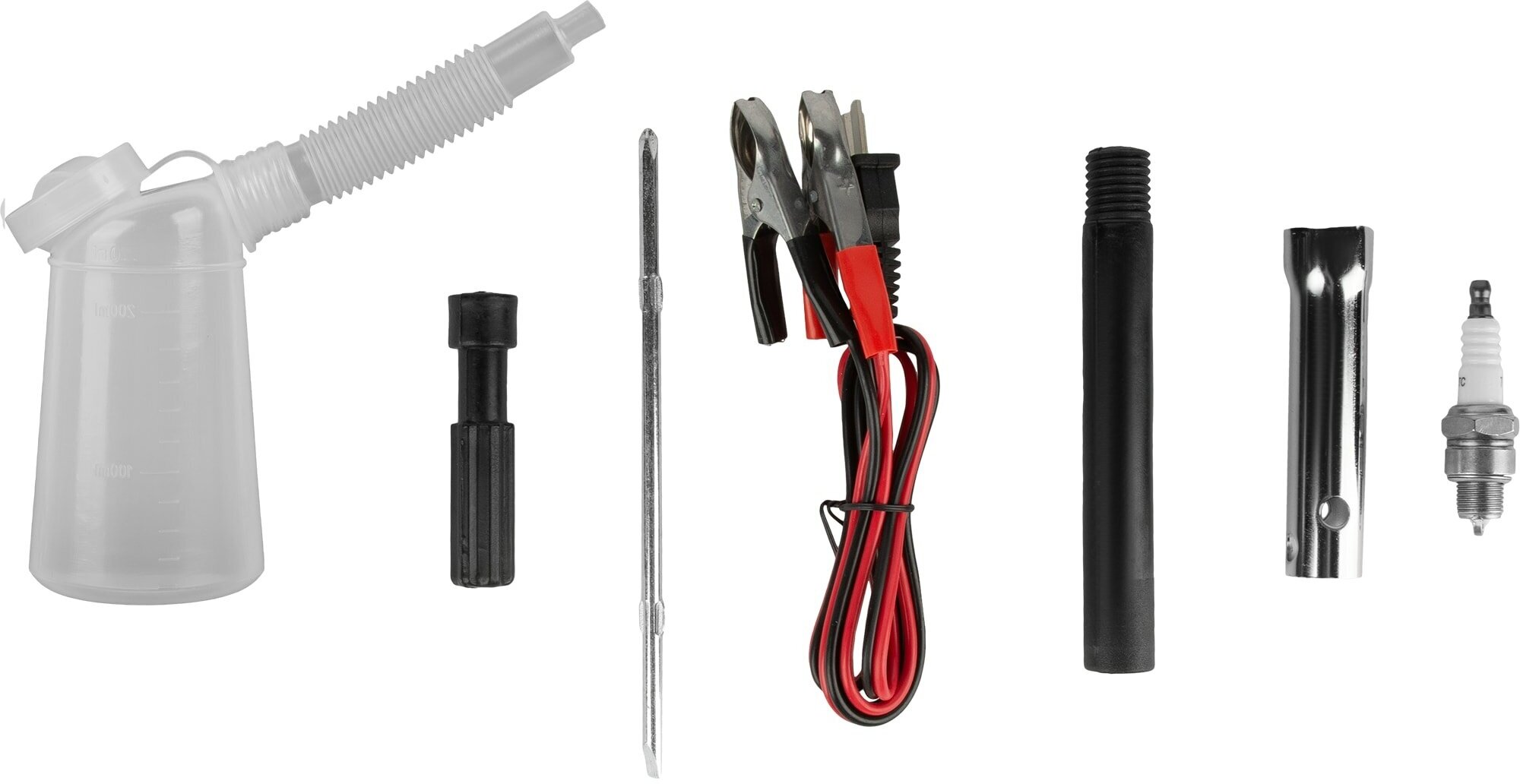 Широкая горловина бензобака. Есть ручка для переноса.