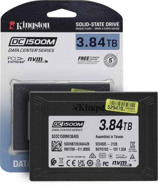 Твердотельный накопитель SSD 2.5" 3.84 Tb Kingston DC1500M Read 3100Mb/s Write 2700Mb/s 3D NAND TLC (SEDC1500M/3840G)