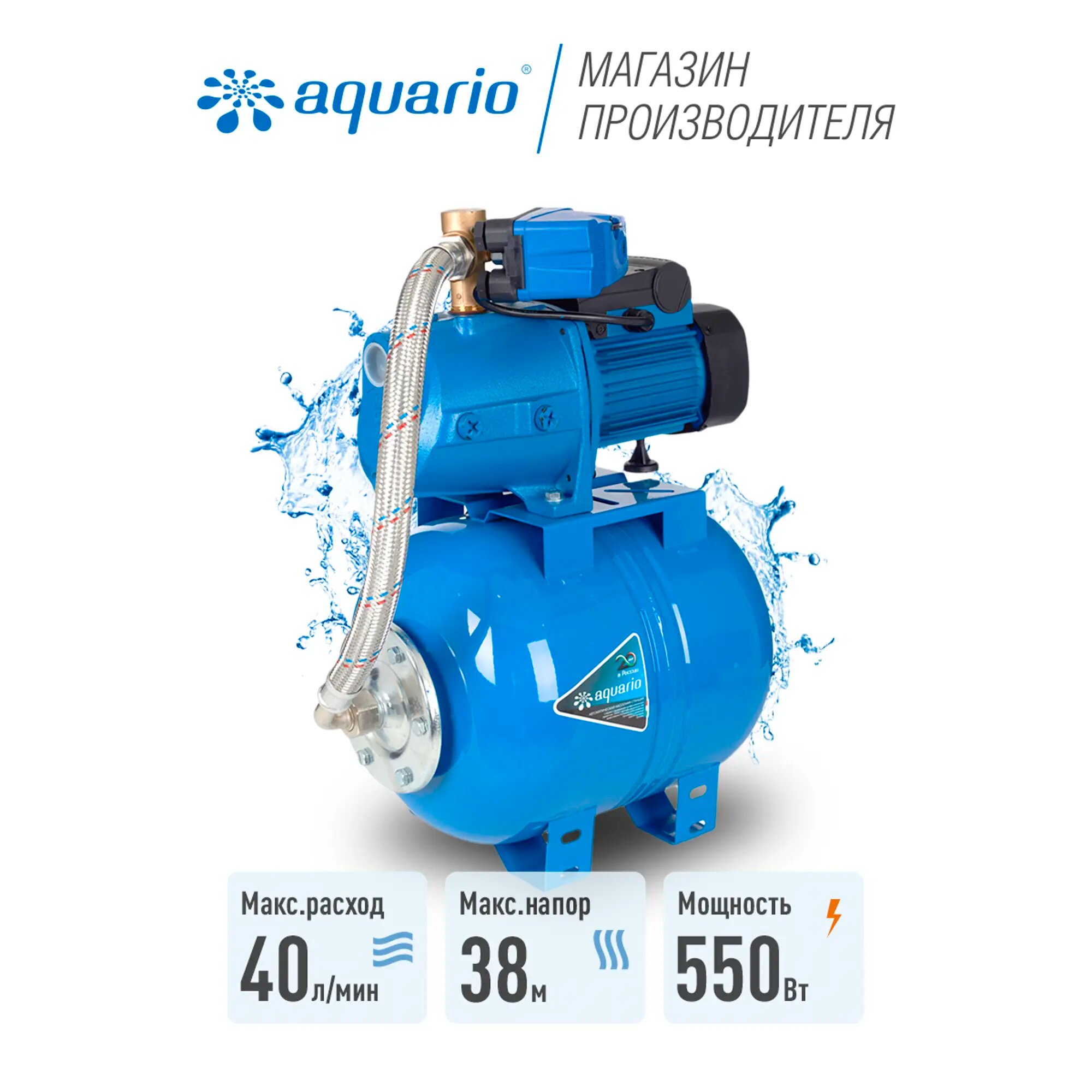Насосная станция AQUARIO AUTO AJC-60С ( P1мощность-550Вт/ч, Hmax напор-38м, Qmax расход 40л/м)