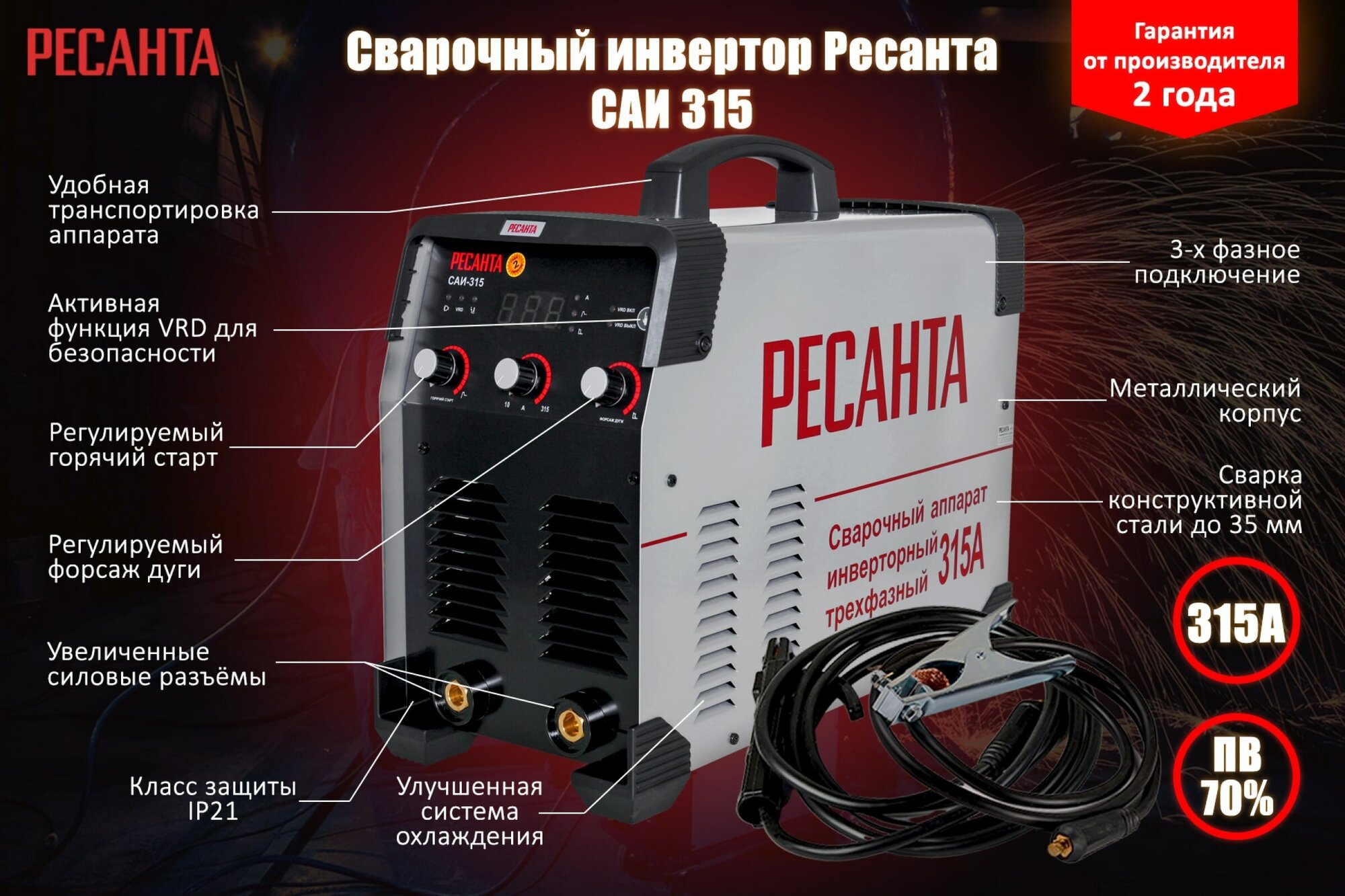 Аппарат сварочный Ресанта САИ 315 инверторный, трехфазный, 65/25