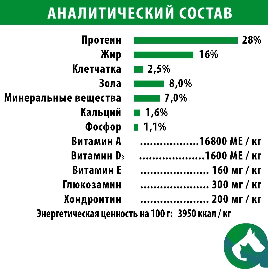| Витамины | А, Д3, Е, глюкозамин, хондроитин |