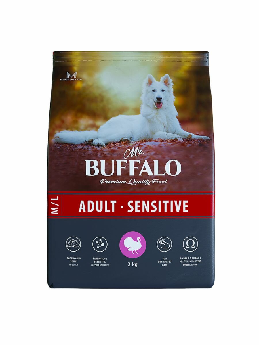 Mr.Buffalo Adult Sensitive (Баффало) 2кг х 2шт индейка сухой для собак средних и крупных пород