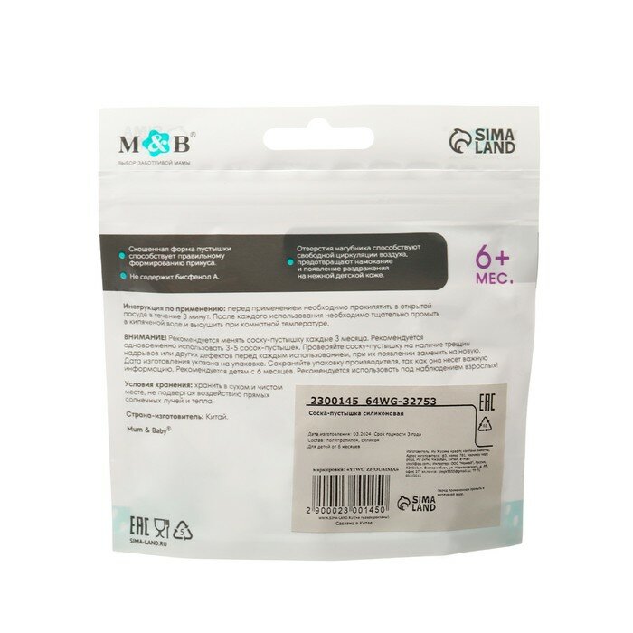 Mum&Baby Соска-пустышка ортодонтическая, силикон, +0мес., цвет бирюзовый