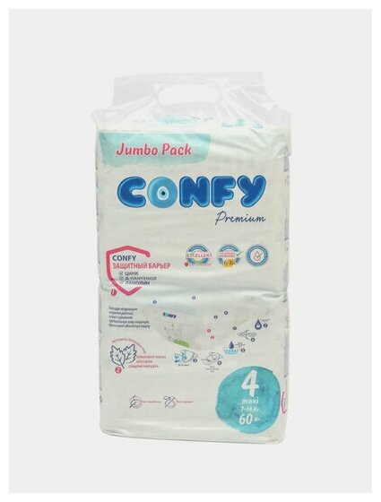 Подгузники детские CONFY Premium, MAXI JUMBO, 60 шт