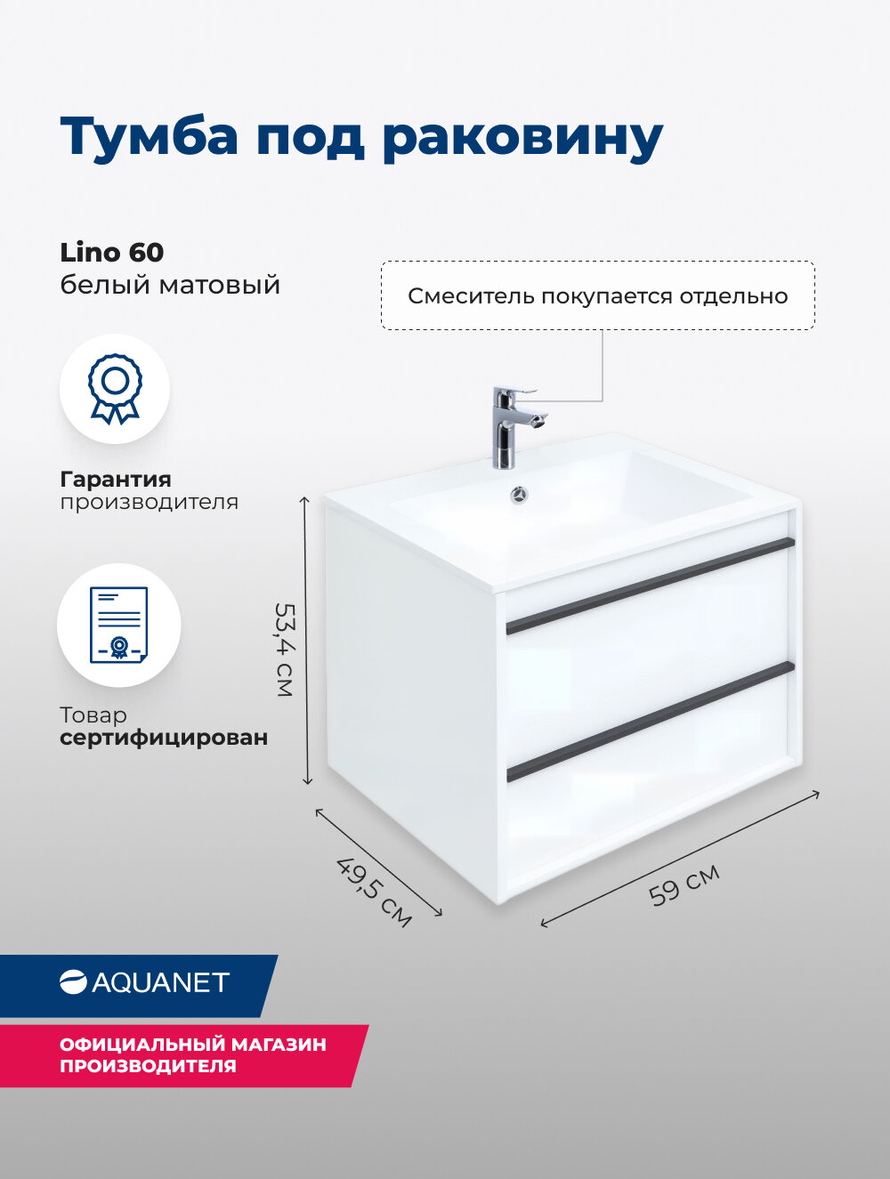 | Комплектация | Тумба под раковину Aquanet Lino 60 белый матовый (00253901), раковина в комплект не входит |