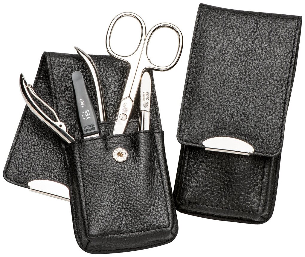 Yes 9233 Маникюрный набор yes, 4 пр. футляр: натуральная кожа, цвет черный