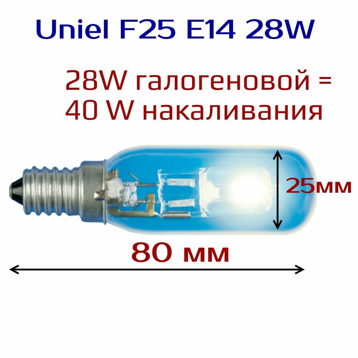 Uniel F25 E14 28W(420lm) галоген, для холодильников и вытяжек 25x80 HCL-28/CL/E14/F25 special