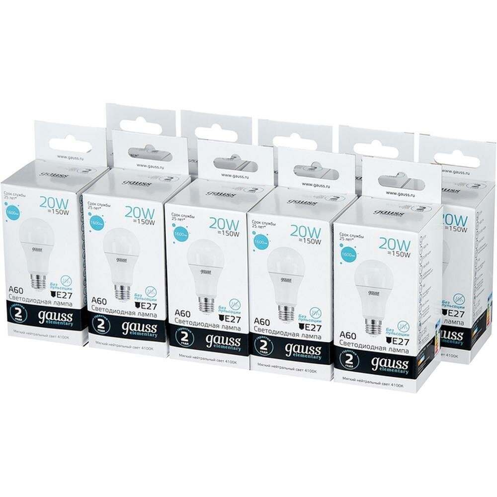 Светодиодная лампа Gauss Elementary LED A60 20W E27 4100K (упаковка 10шт)