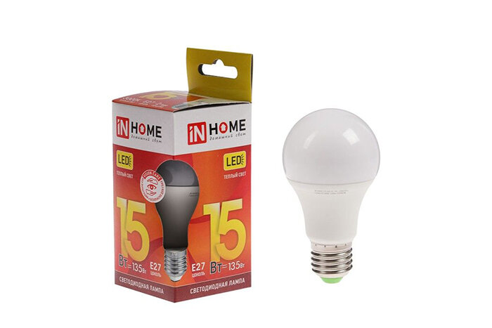 Лампа светодиодная IN HOME LED-A60-VC, E27, A60, 15 Вт, 3000 К