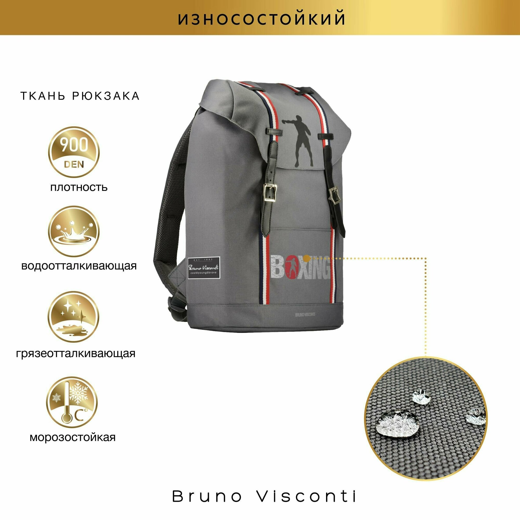 Купить Рюкзак BrunoVisconti городской серый "BOXING", Арт. 12-011-027/05