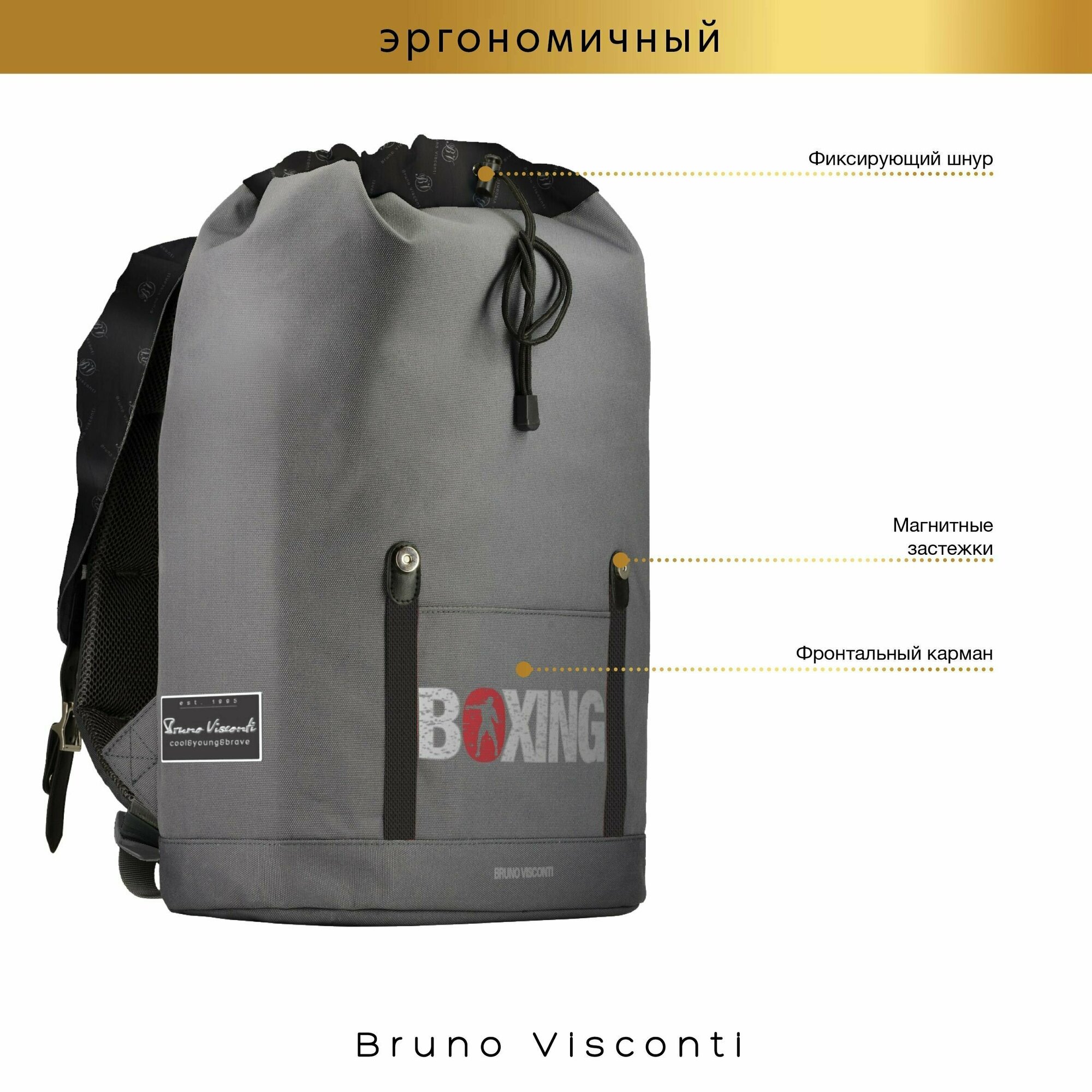 Рюкзак BrunoVisconti городской серый "BOXING", Арт. 12-011-027/05 интересное: