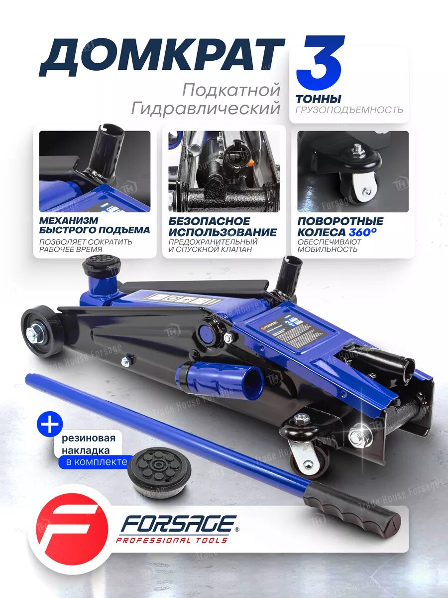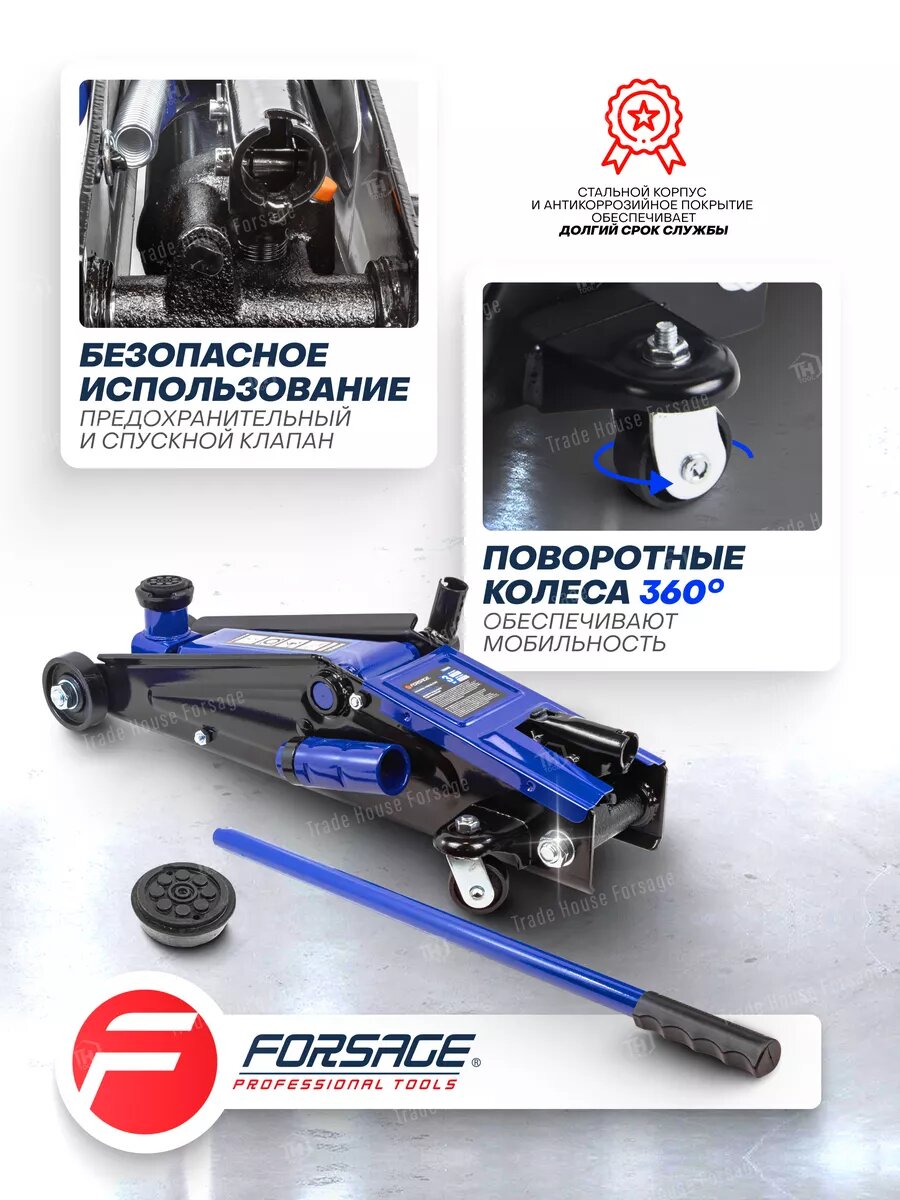 Подкатной гидравлический домкрат с механизмом быстрого подъема, 3т Forsage F-T83006B