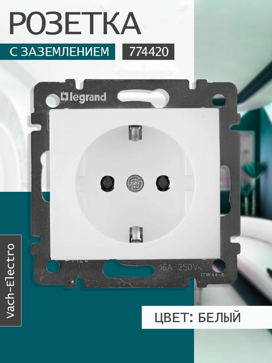 4шт. - VALENA Розетка с заземлением в рамку белая / Legrand; арт. 774420; оригинал / - комплект 4шт
