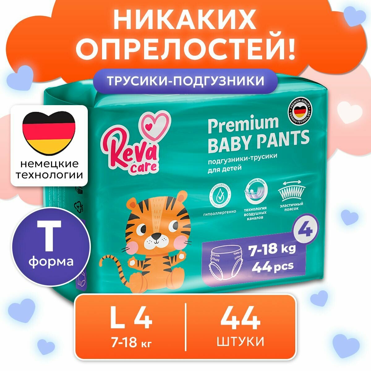 Подгузники трусики детские Reva Care Premium размер 4 L, для детей весом 9-14 кг, в упаковке 44 шт. интересное: