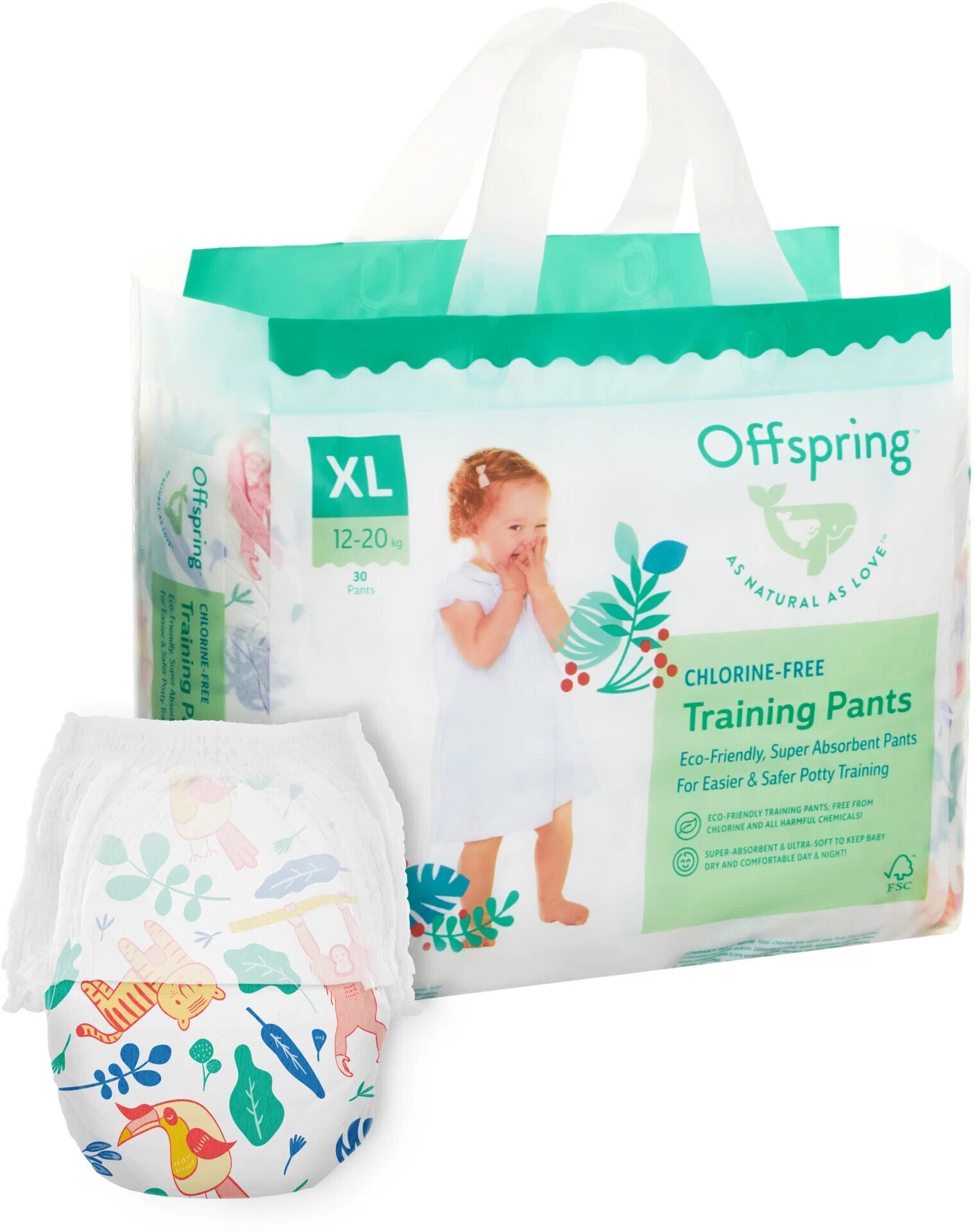 Трусики-подгузники Offspring расцветка Джунгли XL (12-20 кг.), 30 шт.