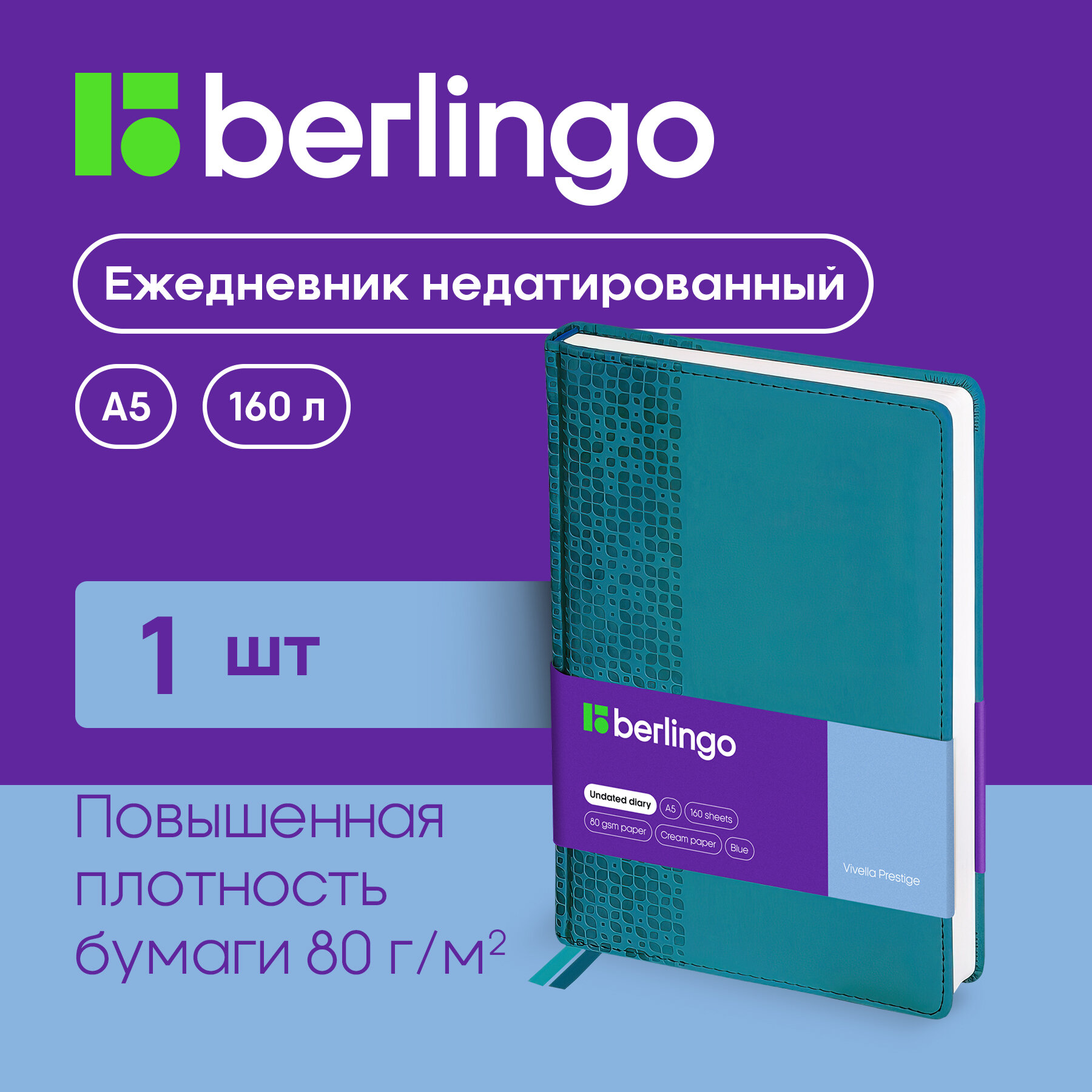 Ежедневник недатированный Berlingo A5, 160 листов, кожзам, "Vivella Prestige", аквамарин (UD0_80511)