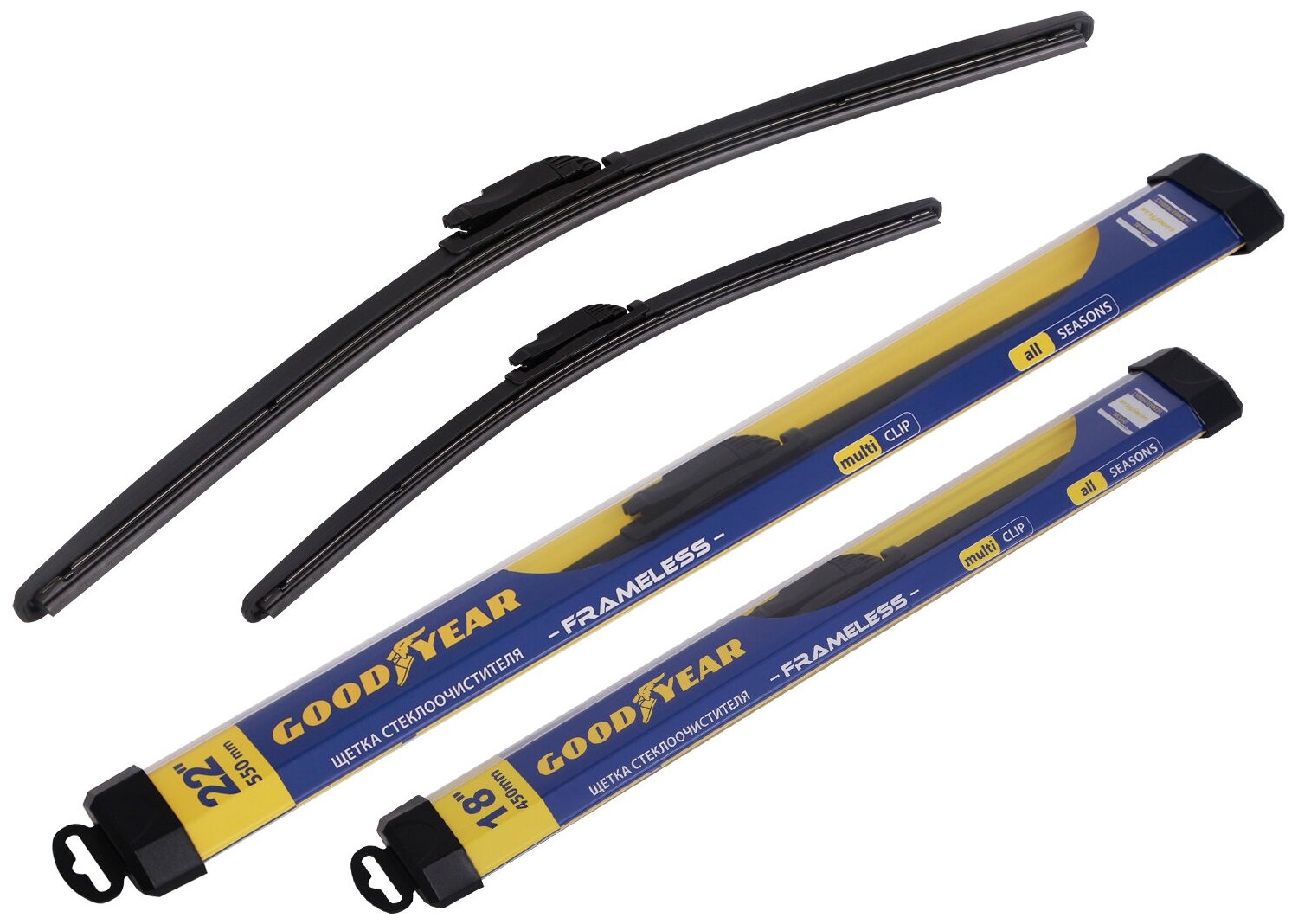 Щетка стеклоочистителя Goodyear Multi Clip Premium 450мм бескаркасная 8 переходников