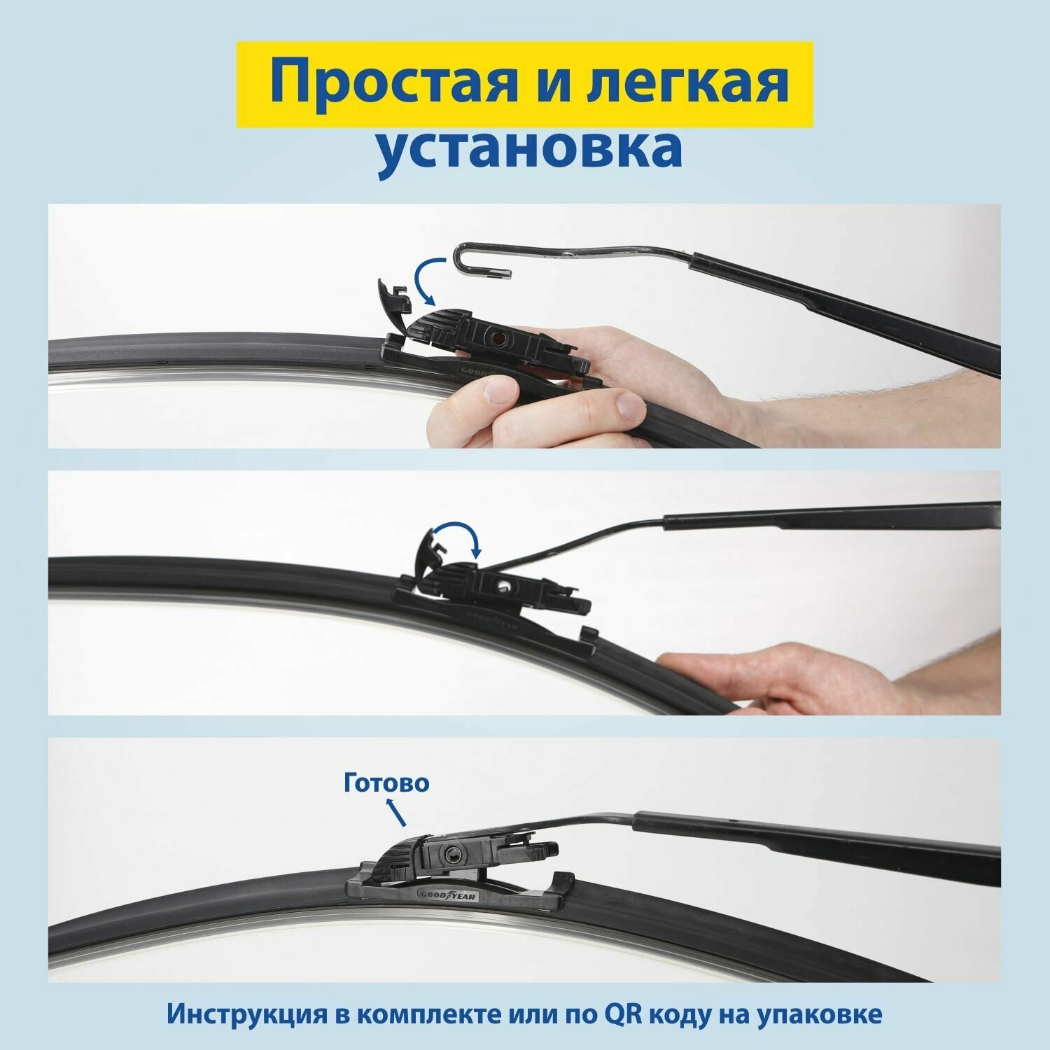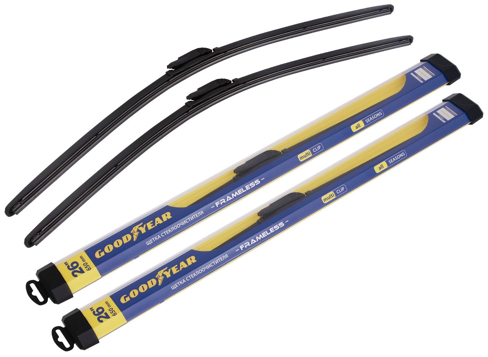 Бескаркасная щетка стеклоочистителя Goodyear PREMIUM 26"/65 cm, Дворник для автомобиля (8 переходников в комплекте)