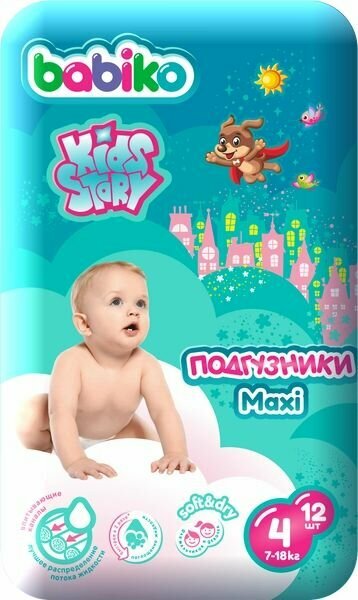 Подгузники Babiko, kids story junior, размер 4, 7-18 кг, 12 шт