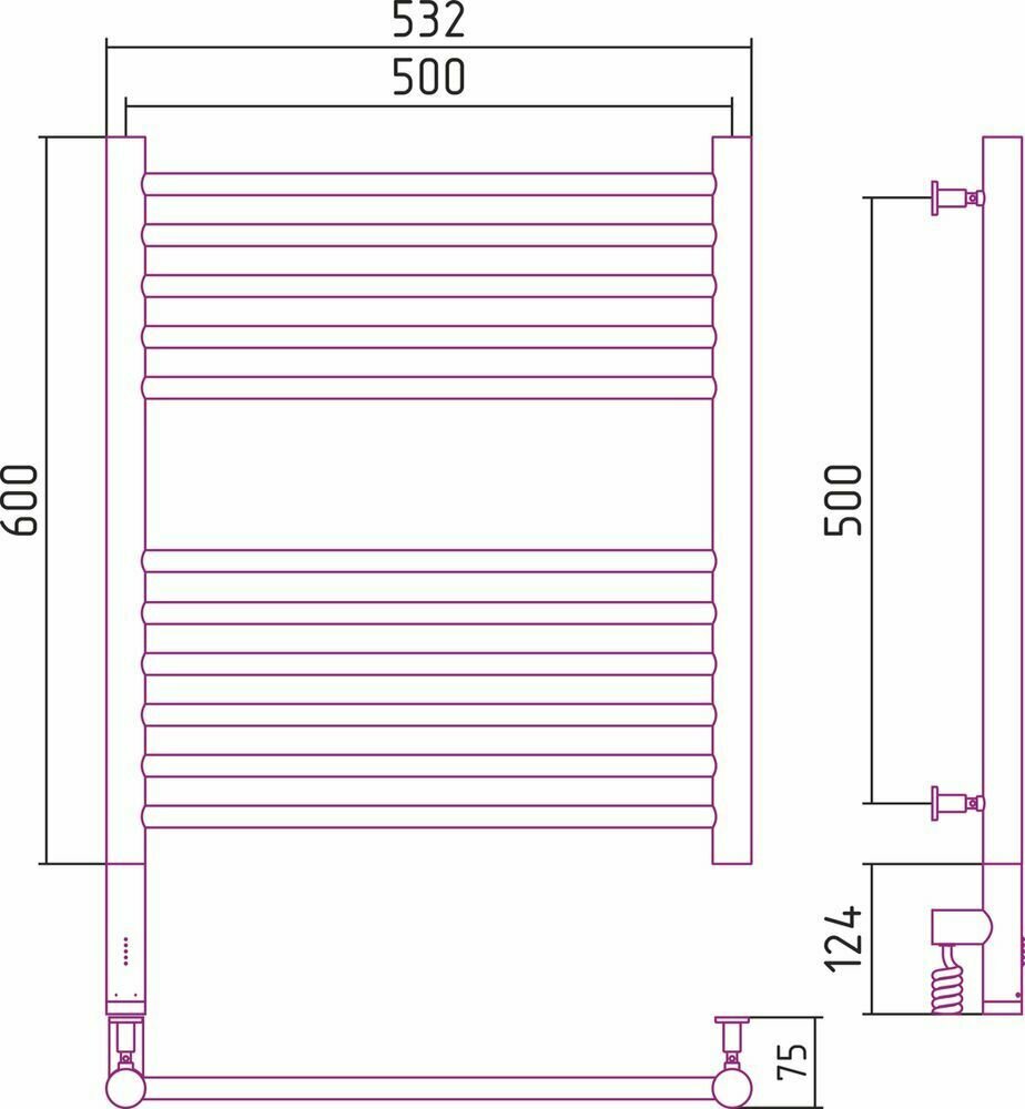 Полотенцесушитель Электрический Тругор Пэк сп 5 П 60х50 черный ВГП