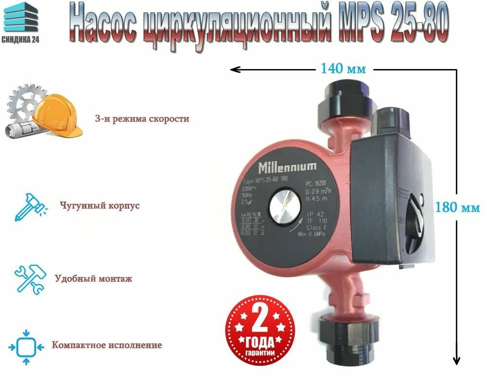 Насос циркуляционный Millennium MPS 25-80 (180 мм) с соединительными гайками