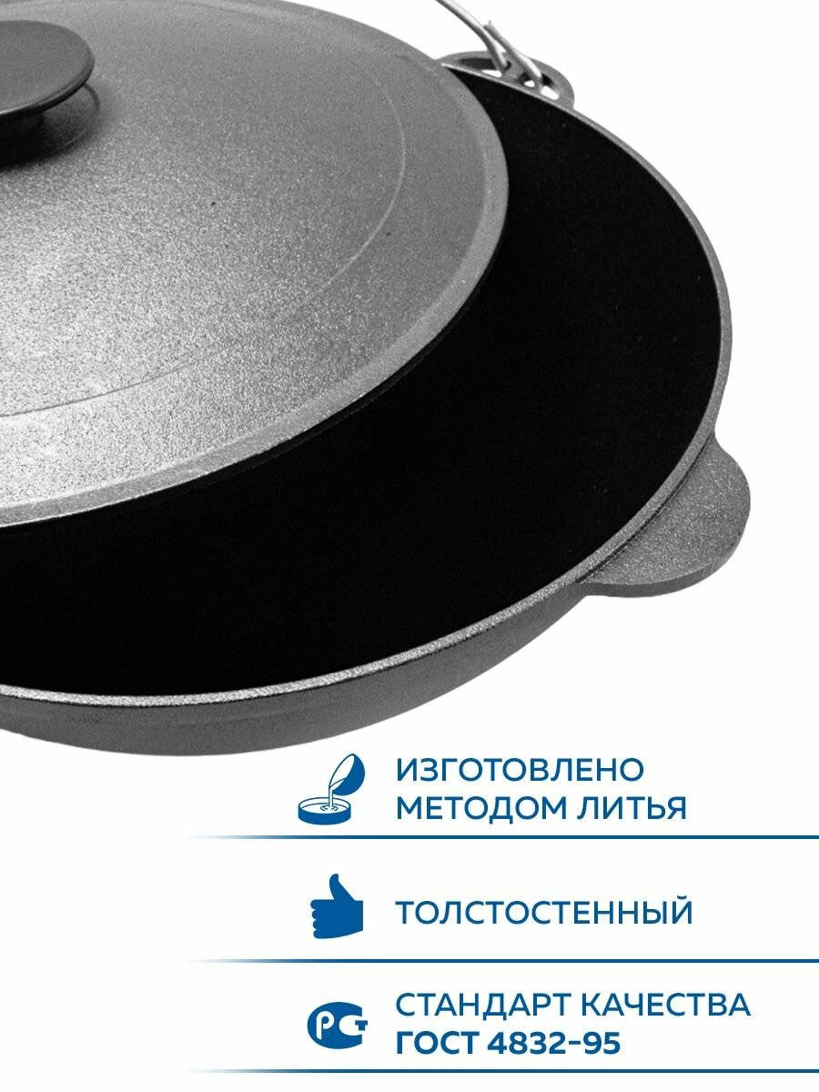 Казан татарский чугунный биол с крышкой и ручкой-дужкой 12 л