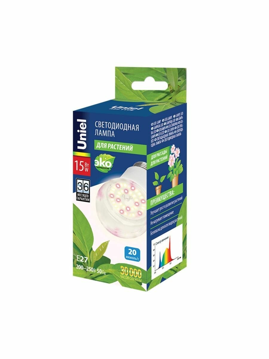 Лампа светодиодная для растений Uniel UL-00007405, E27, A60, 15 Вт