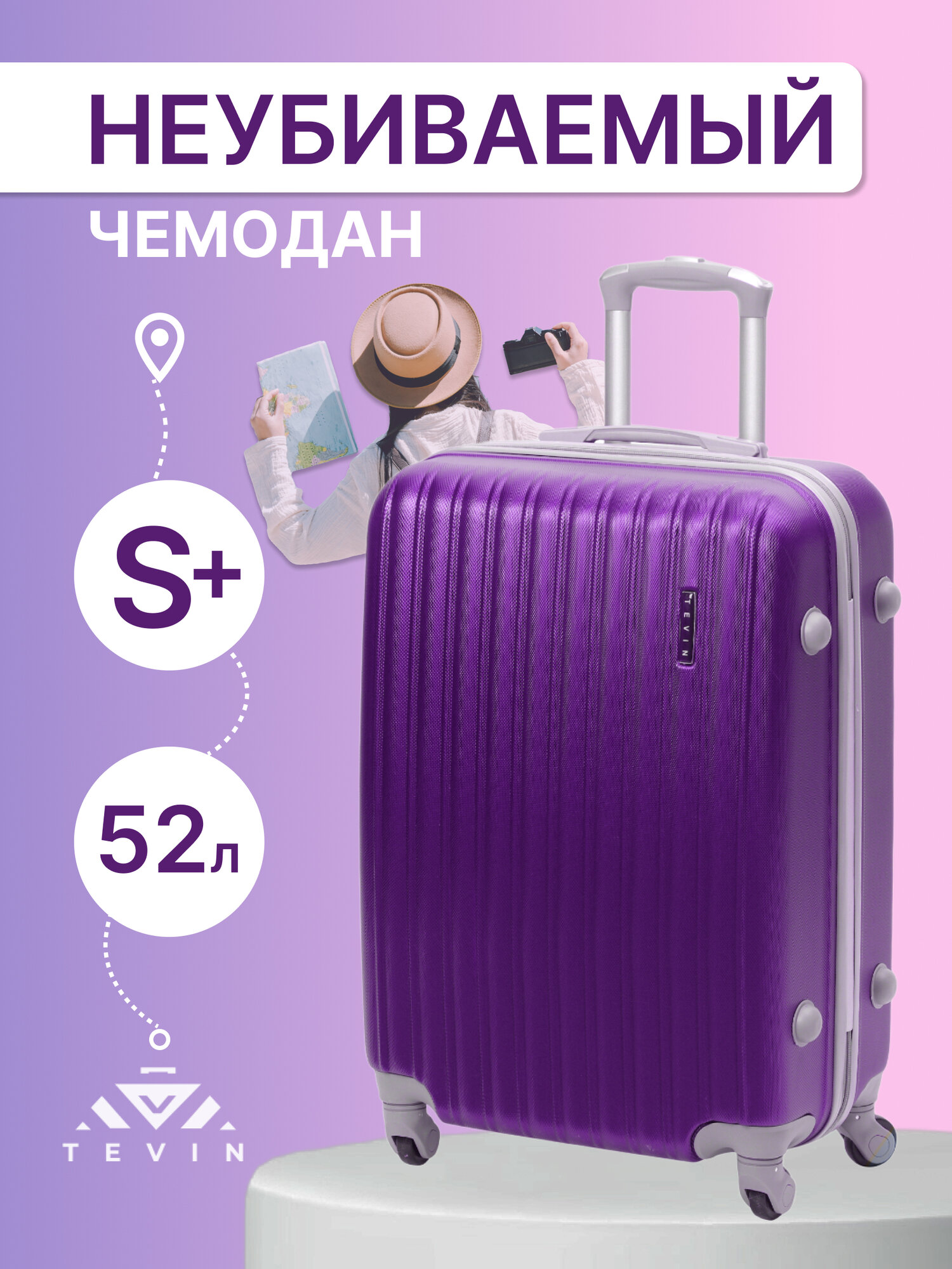 Чемодан TEVIN, 52 л, размер S+, purple