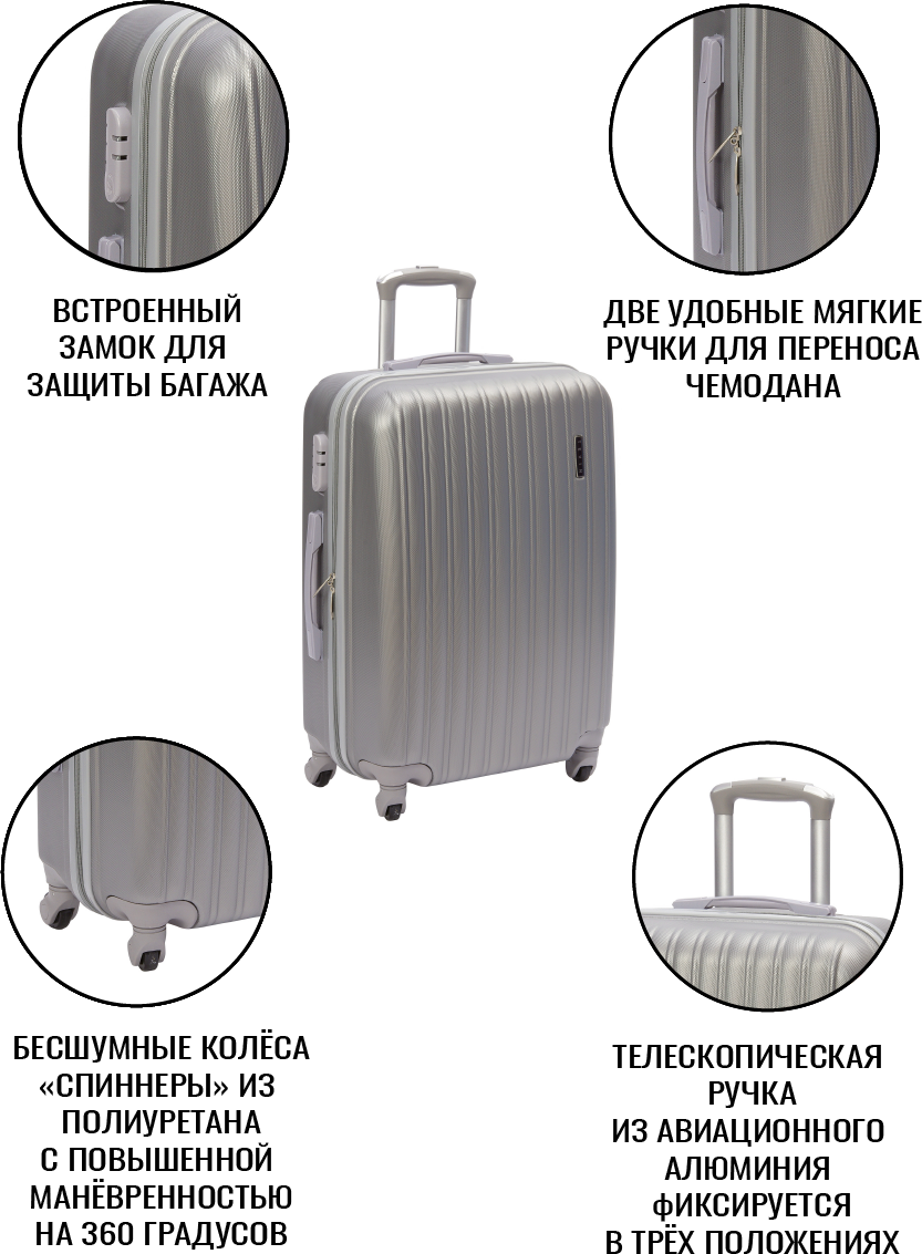 СохранитьЧемодан на колесах дорожный средний багаж для путешествий небольшой s+ TEVIN размер С+ 60 см 52 л легкий и прочный abs (абс) пластик Серебряный интересное: