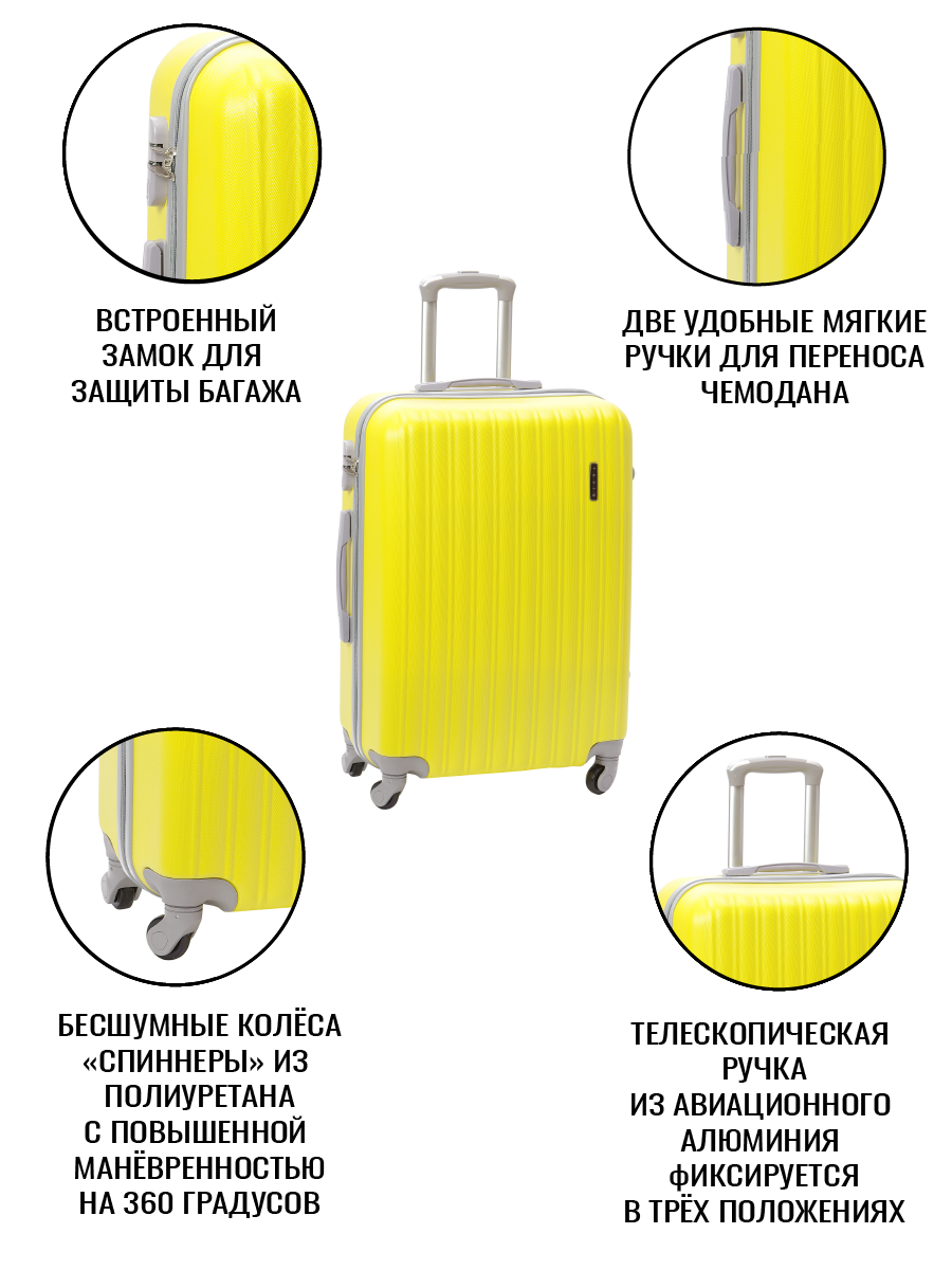 Чемодан на колесах дорожный средний багаж для путешествий s+ TEVIN размер С+ 60 см 52 л легкий и прочный abs (абс) пластик Желтый