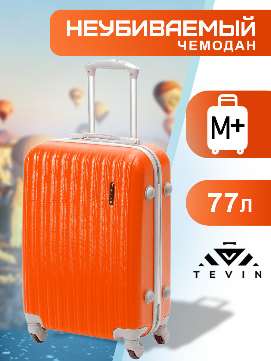 Чемодан TEVIN, 77 л, размер M+, оранжевый