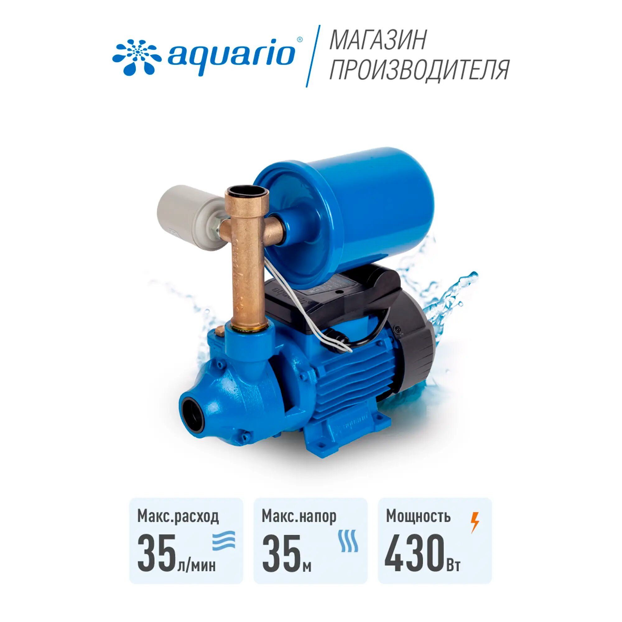 Насосная станция AQUARIO AUTO ADB-35-mini, 0.43кВт 35л/мин глубина-5м напор-35м (7437aq) 7437aq