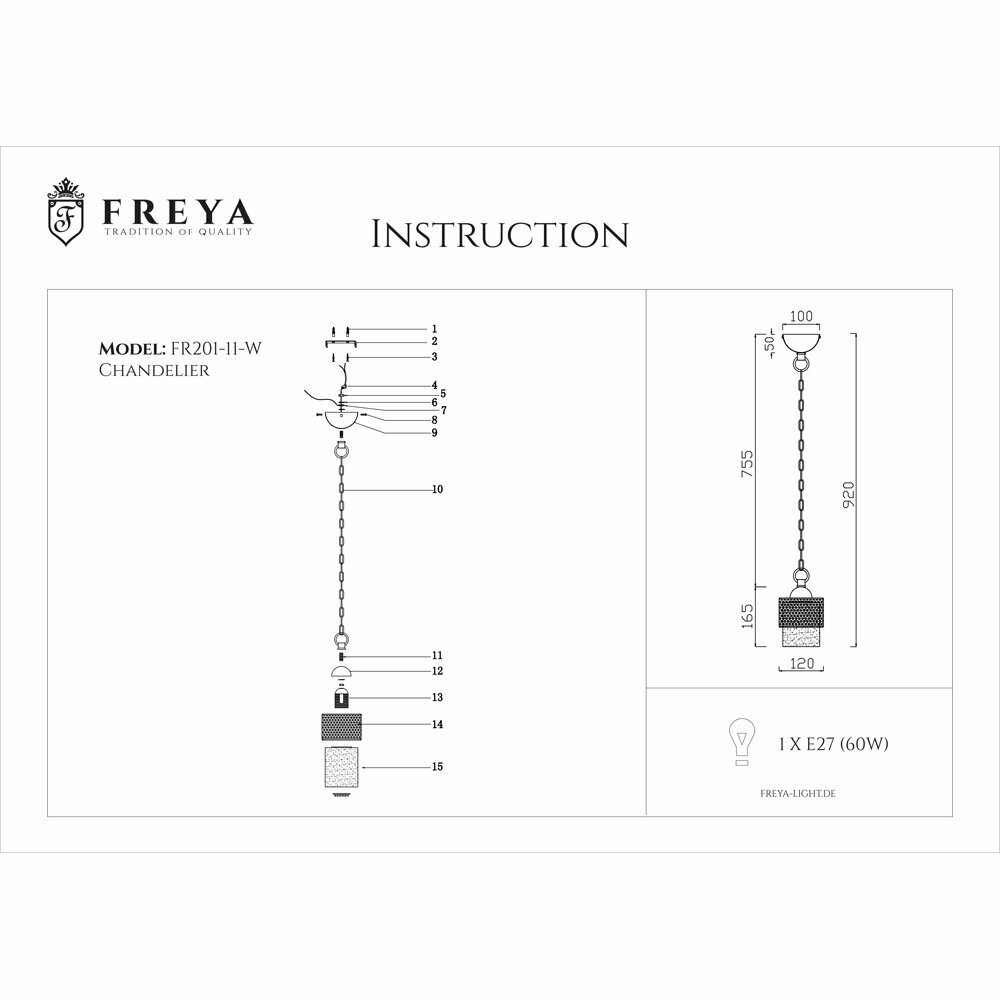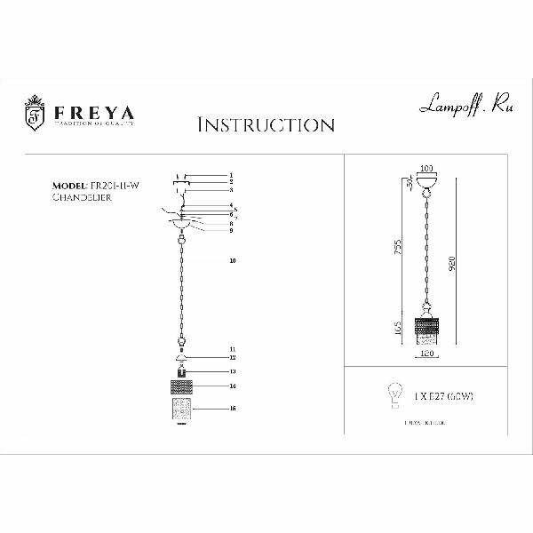 Светильник потолочный подвесной Freya Ornella E27 60 Вт 220-240 В белый IP20 175х120х120 мм (FR2201-PL-01-WG)