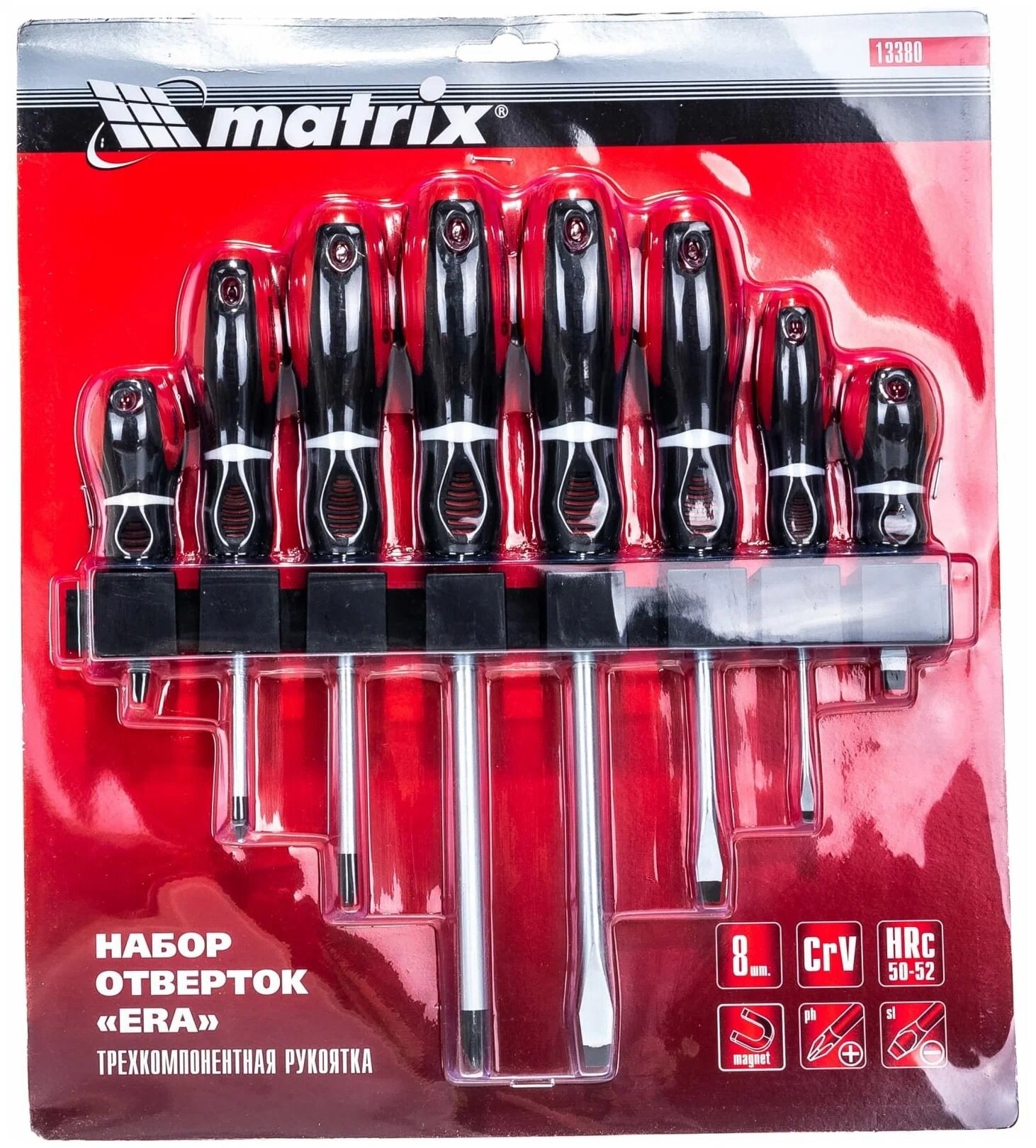 Набор отверток "Era", 8 шт, CrV, трехкомпонентная рукоятка Matrix (13380)