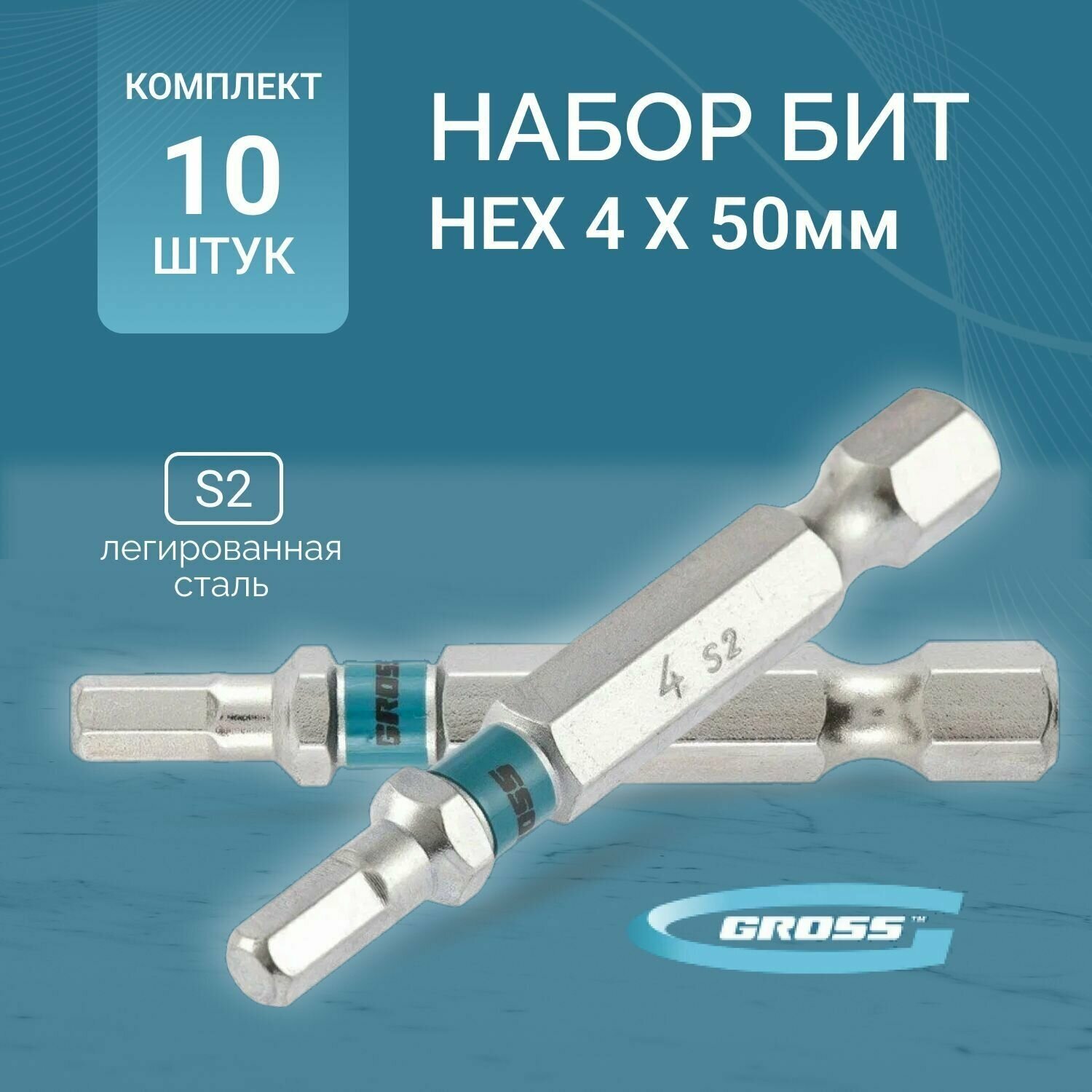 Набор бит HEX 4х50, сталь S2, 10 шт Gross [11463]